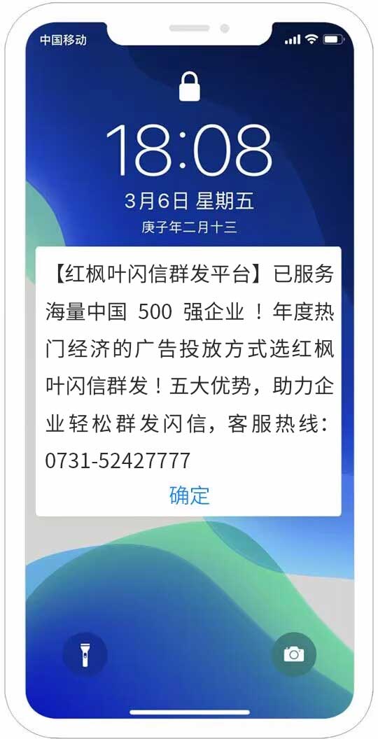 紅楓葉閃信群發平臺 是指用戶在收到閃信群發內容后,無需打開,短信內容直接顯示在用戶手機屏幕上,用戶如果沒有點擊閱讀,則閃信內容一直有顯示,用戶必須點擊才能關閉,真正實現了高閱讀率、高到達率!提升了用戶對產品的轉化率!